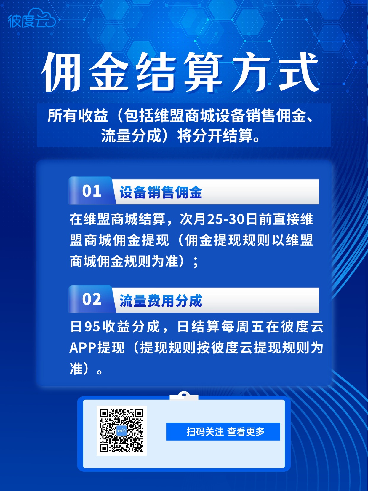 2.该佣金政策只限于彼度云G98型号,但是代理也可以引导客户在维盟商城下单购买任何产品(包括但不限于路由器、交换机、AC控制器等),具体返佣政策参考商城返佣政策。