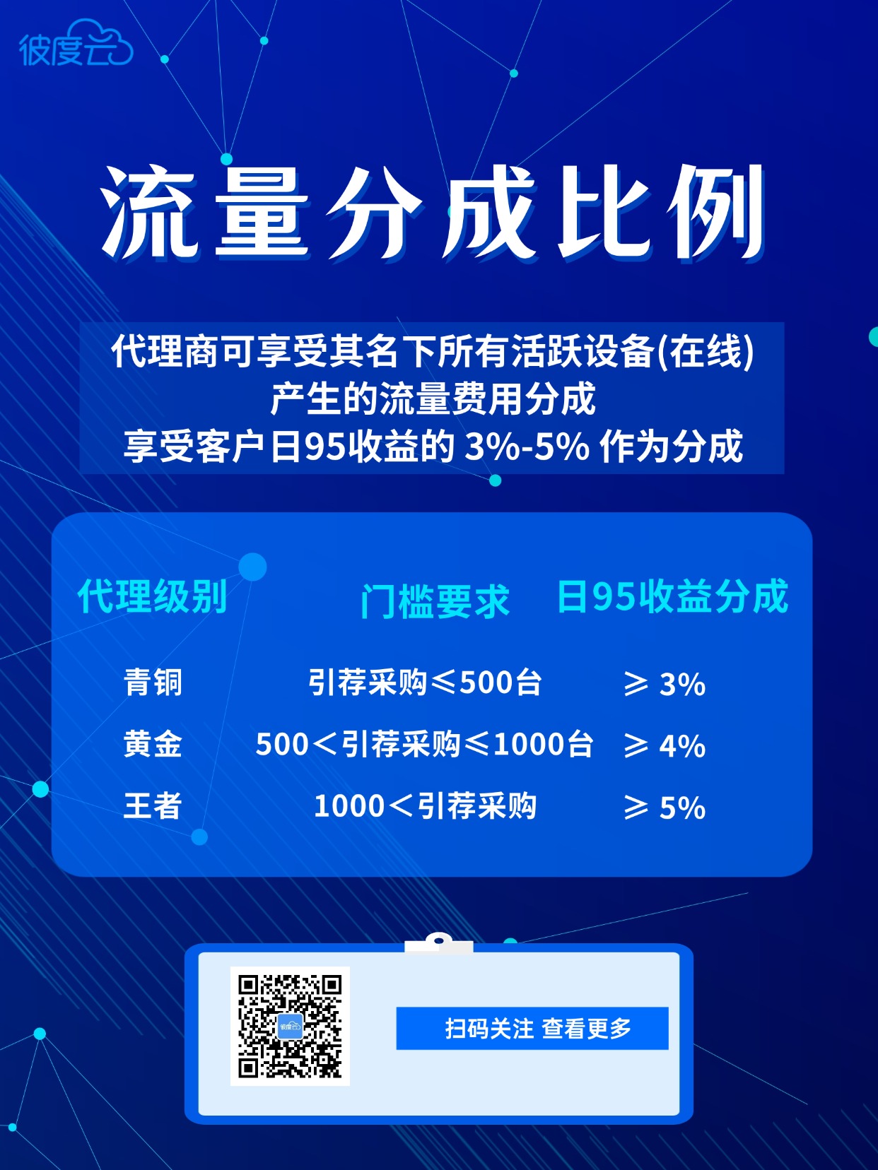 为鼓励代理商持续经营用户,除设备销售利润外,我们还设立丰厚流量分成。