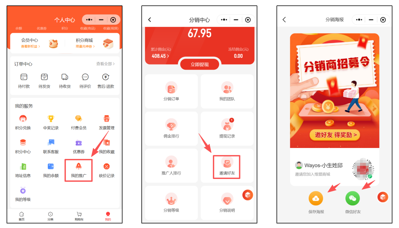 1. 代理商在维盟商城完成注册后,生成推广海报即可。